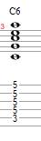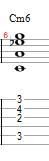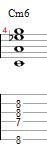 The next 6th chord is going to be a Minor 6th chord, which is formed the same way as the Major sixth chord, except to make it minor we lower the 3rd one half step so we now have this built as (1-b3-5-6). Intervalically, it can be thought up of as (Root, Minor 3rd, Perfect 5th, Major 6th)