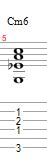 The final Minor 6th chord is going to be built with the root on the A string, the 6th on the G string, the Minor 3rd on the B string and the 5th on the high E string.