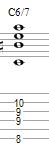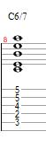 The final 6/7 chord is going to be built with the Root on the A string, the 3rd on the D string, the 7th on the G string, the 3rd again on the B string, and the 6th on the high E string.