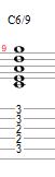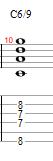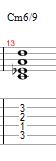 And the Minor 6/9 chord is built with the Root on the A string, the Minor 3rd on the D string, the 6th on the G string, and the 9th on the B string.