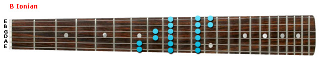 We're now going to apply the half picking technique to a couple descending patterns in B Major, or more specifically, the B Ionian scale.
