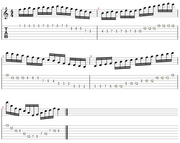 The first example is in C Major and covers the first 12 frets using a strict 16th note pattern.