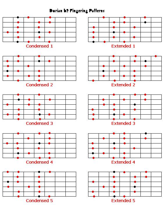 The fingering patterns for this mode are the same as the Dorian mode except the second is flattened