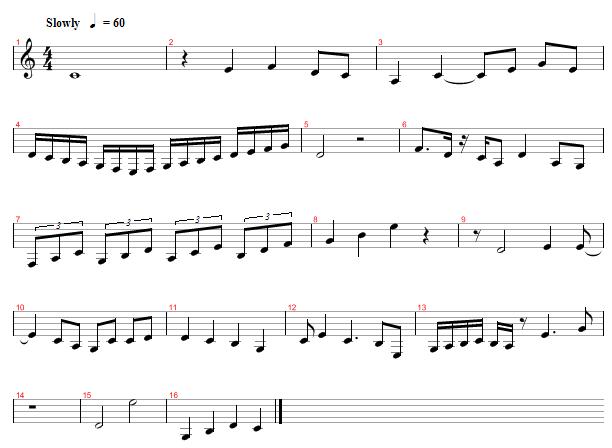 Once you do, you can go to the example below. This one not only combines the notes we have learned here, but the notes on the Open A and E strings as well as the open strings. So as before, start off by clapping and singing the rhythms first, then once you feel comfortable with it, you can start playing it on the guitar.