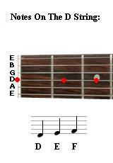 Now, we are going to tackle the notes on the open D string. As before, make sure you have these notes properly memorized before moving on to the example.