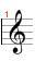 The quarter note looks just like the half note, except that this note has the note head completely filled in. This note is held out for 1 beat in each measure. Just count this out as "One"