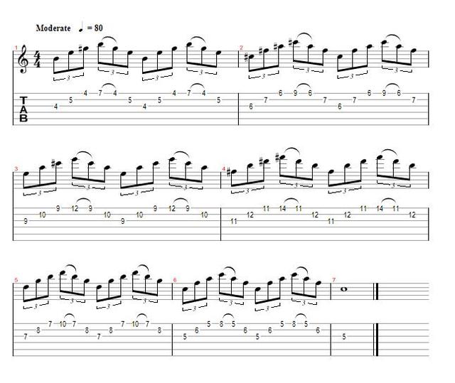 The first 3 string patterns we will learn are just basic major and minor triads on the G, B and high E strings. The first triad we are going to learn is a major second inversion sweep.