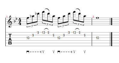 This pattern also has 2 notes played across the same fret, so use the same technique of playing this like we learned in the previous example.
